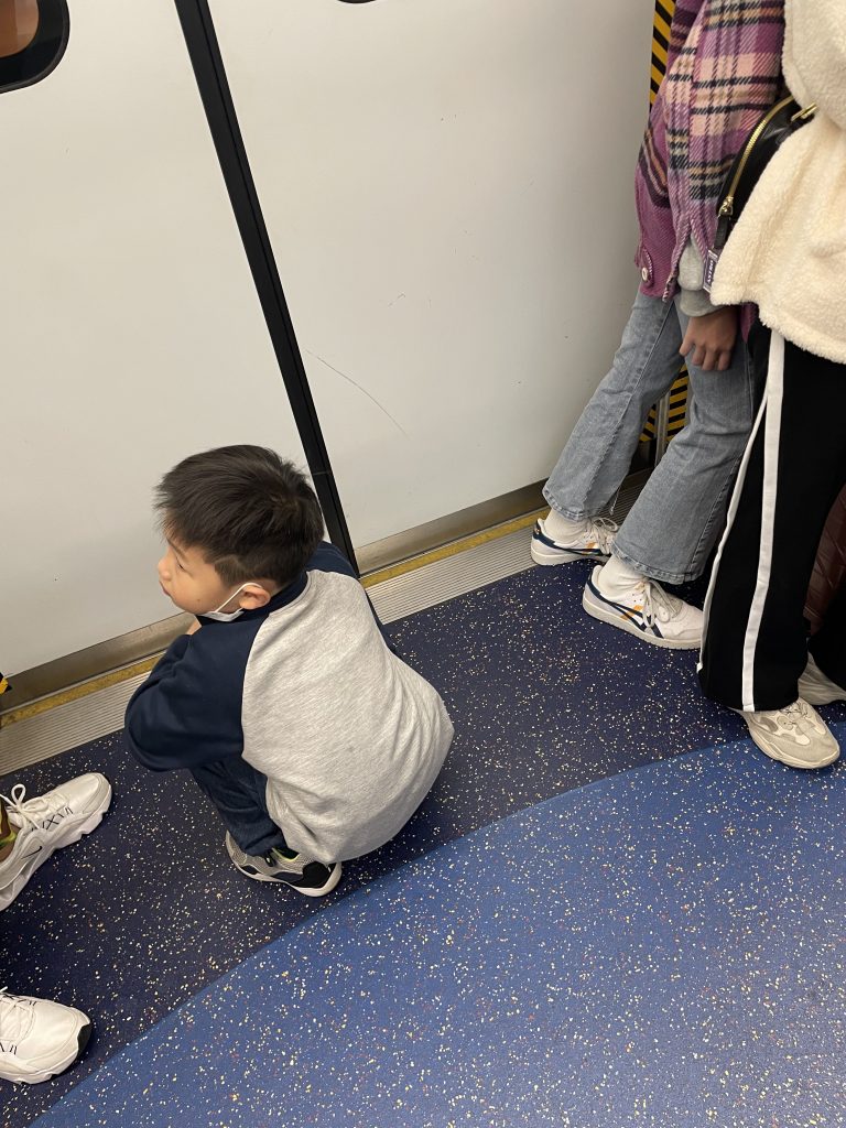 於2023年1月25日約09:50,我由朗屏站乘搭一架往烏溪沙方向的第五卡近第一門前,有一名男童坐於車廂地上,當時的他並沒有影響到他人,故大家都無出聲