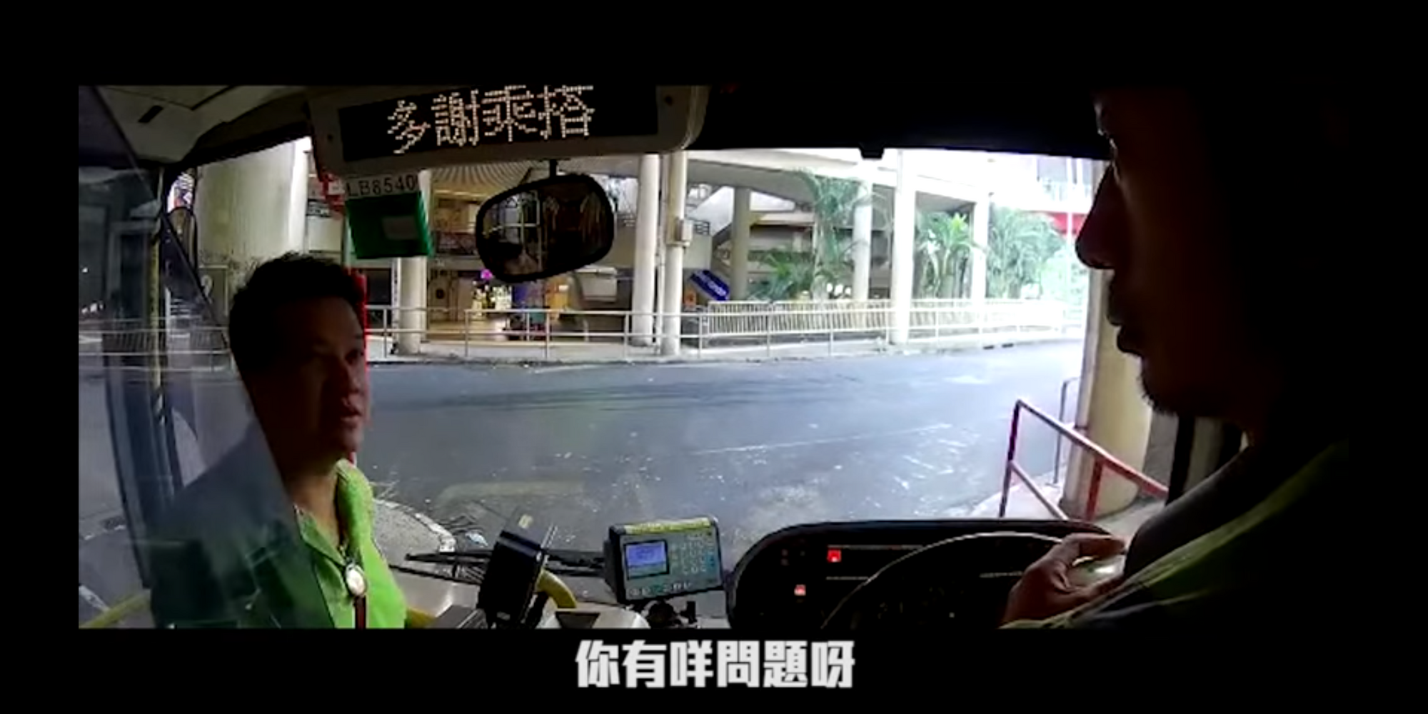 主角就仲過份,話我:「有乜問題,你唔好咁串,而家你態度唔好。我小朋友張卡扣唔到,係九巴部八達通問題,你應該客氣啲,禮貌啲請佢拍」