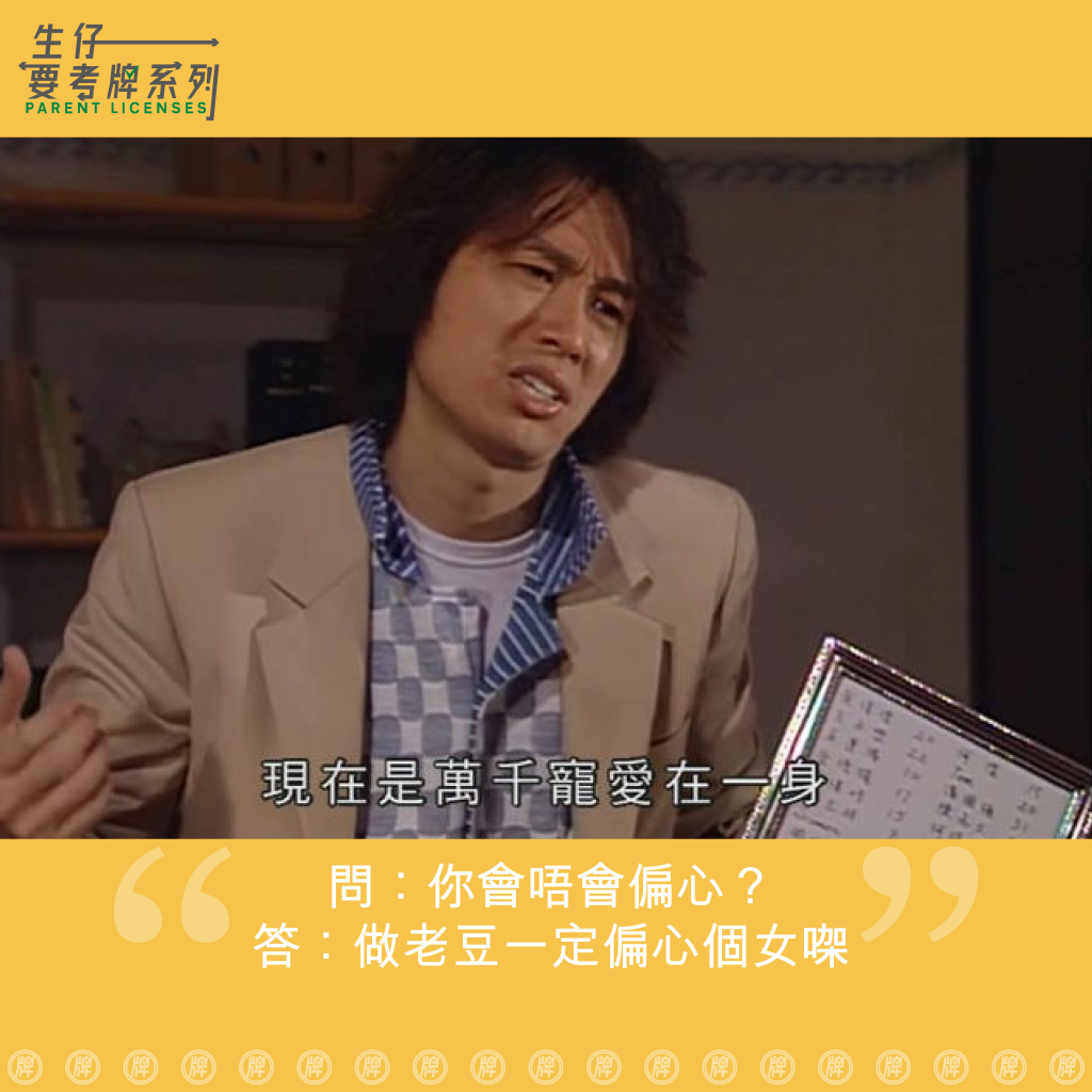 我們育有一子,當年先生希望生個女兒陪伴兒子,對於此事我十分反對。我問他:「你會唔會偏心?」
