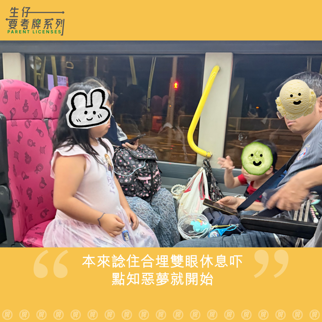 整個車程間,阿媽大聲引導個女講嘢,之後又搞個女大聲讀書。諗住架車咁多人費事開口鬧佢,眼神睥咗佢一下以為佢會收斂,點知個阿媽比剛才更加大聲,基本上佢嘅談話內容我係完全聽到晒,例如準備返教會啦,有提及過人名唔知係工人定乜,話放假佢哋最鍾意瞓街㗎啦,叫佢出街瞓唔好返嚟啦,之後就講今日嘅新聞報導出事嘅台式火鍋店係牛大人還是山見?