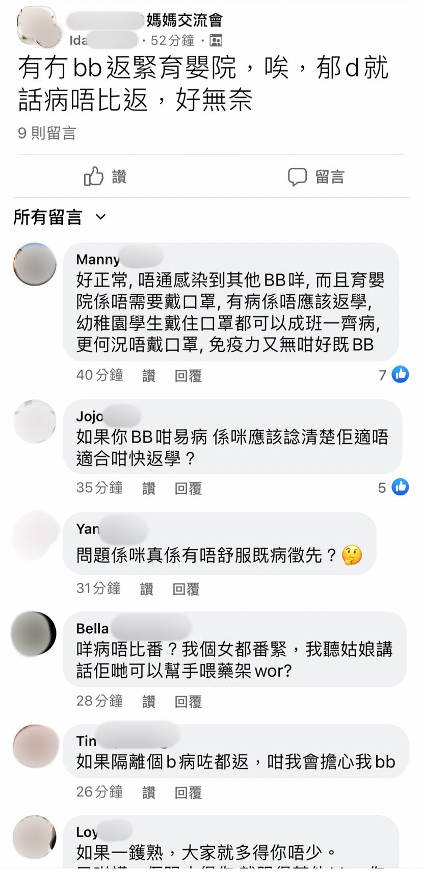「病」係會傳染㗎囉! 疫情篇 2021 年 11 月 26 日 ParentLicenses 瀏覽次數: 2,078 #ParentLicenses1571 「病」係會傳染㗎囉,其實啲家長幾時先明白?自己小朋友帶病返學都已經好辛苦,同時又令其他小朋友危險點解要因為你嘅無時間照顧,就要犧牲大家!?圖片來源@Katie讀者投稿@Katie