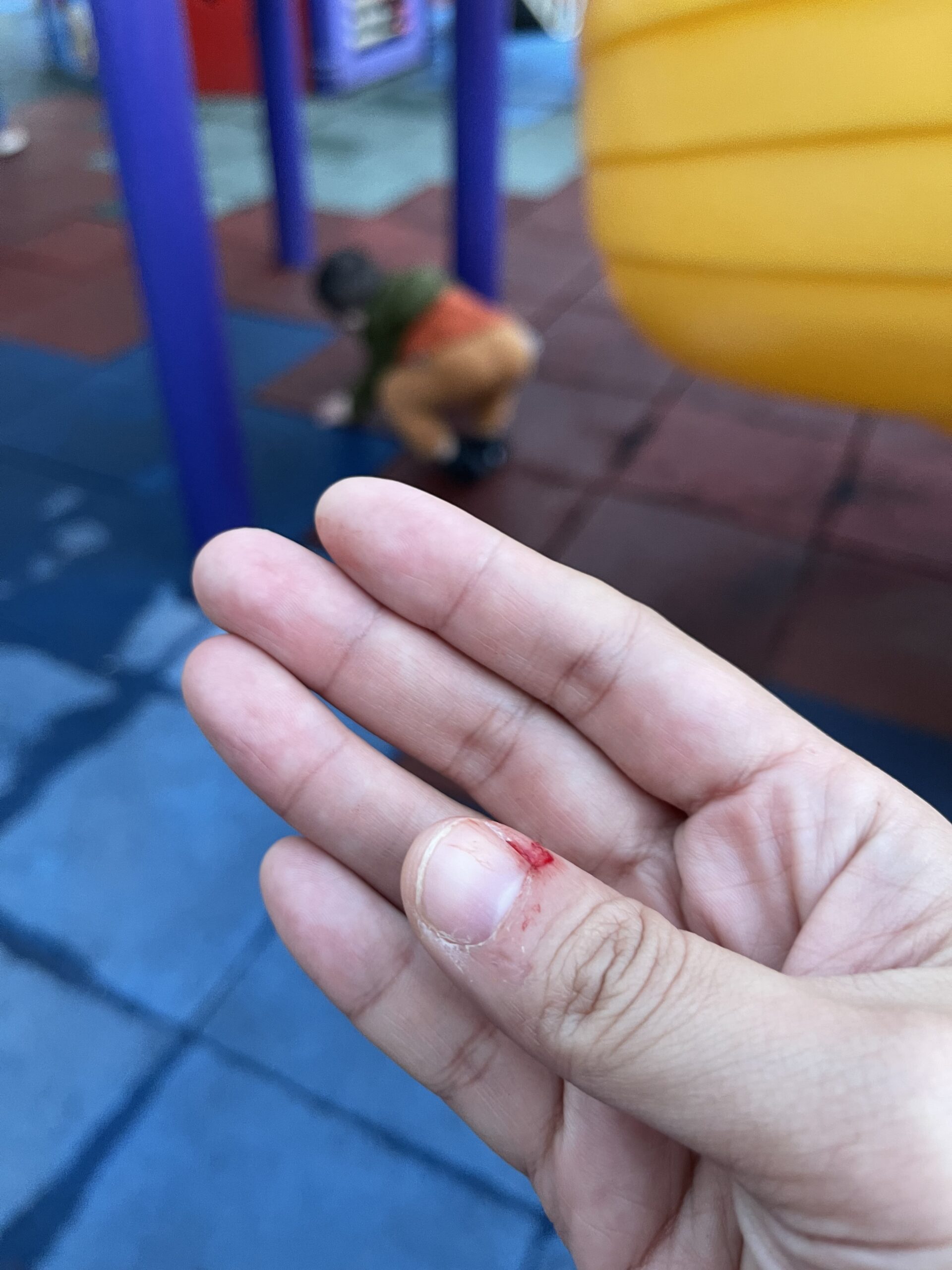 👦🏻直頭出手推,再用腳踢,結果我隻手俾佢對鞋踢到流血
