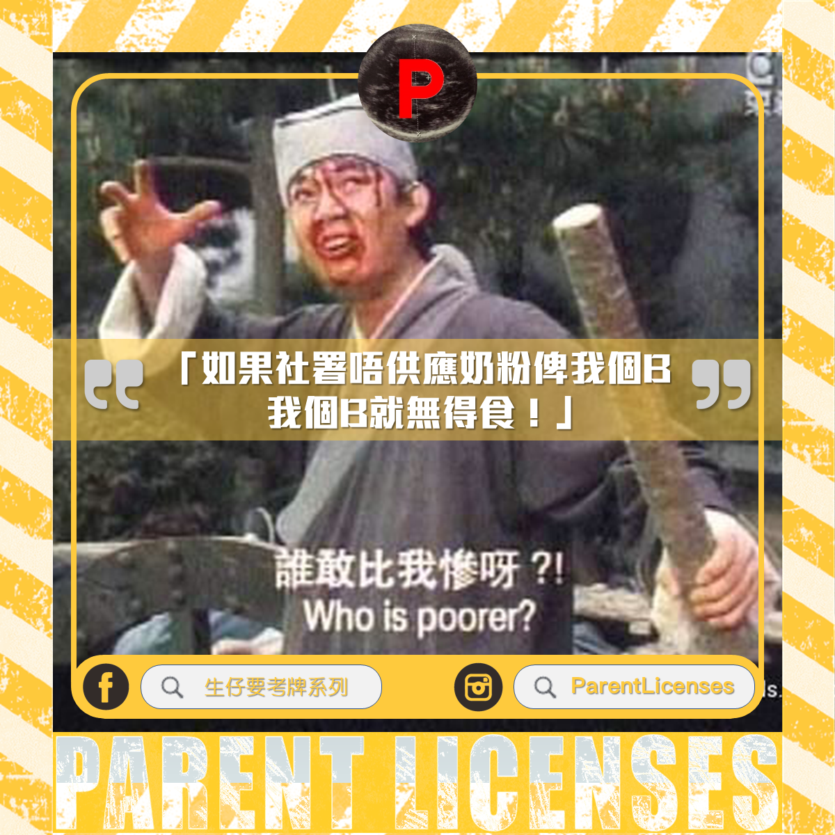 社署無指定奶粉俾我個B,影響我個B嘅成長! 疫情篇 2022 年 3 月 6 日 ParentLicenses 瀏覽次數: 2,144 #ParentLicenses1692 話說,最近好多BB確診,咁媽媽group就流傳打上社署可以拎物資,有好多媽媽就打上去由於確診嘅人數好多,社署都應付唔切,但係group內嘅媽媽就竟評批社署無指定奶粉俾佢個B,影響佢個B嘅成長;更揚言如果社署唔供應俾佢,佢個B就無得食呃!?點解唔可以自己嘗試下解決問題呢?讀者投稿@擴疫之城居民