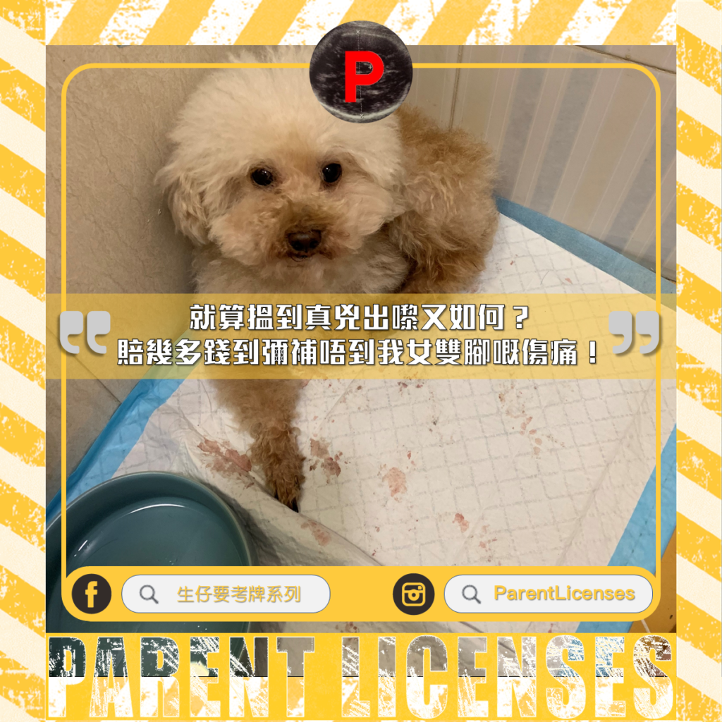 轉瞬間就聽到花花慘叫(我狗狗叫花花,下稱我個女/花花),我即刻右手chok(我係chok短繩嘅)起咗個女,左手接住。當時我個女好驚!仲咬咗我一下!我抱住我隻女,成手都係我個女嘅血!