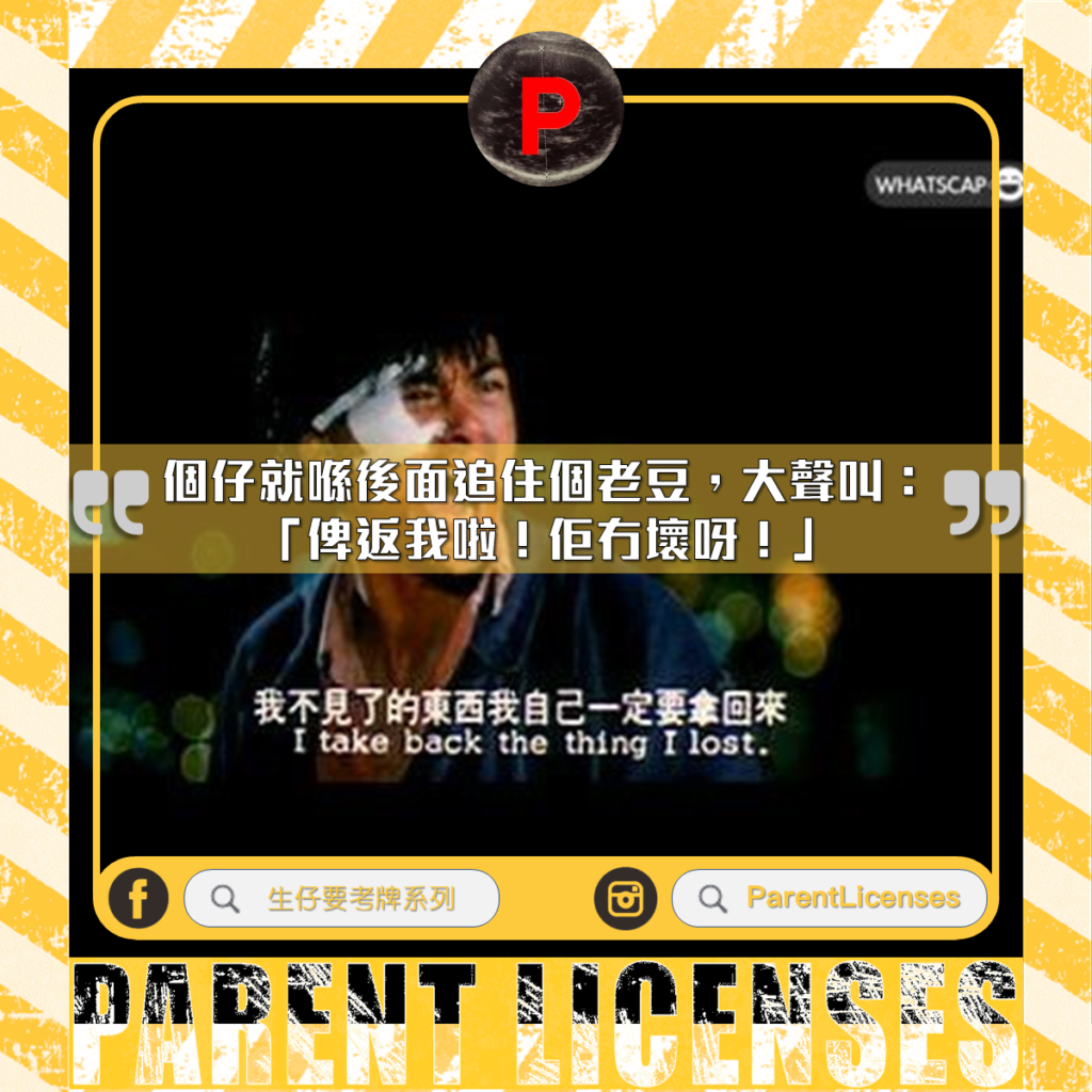 個仔就喺後面追住個老豆,大聲叫:「俾返我啦!佢冇壞呀!」