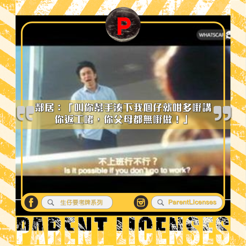鄰居:「裝修咁嘈我都頂咗成個月啦,你俾張超市禮卷就算數?幫手湊下仔就咁多嘢講,你返工啫,你父母都無嘢做!」