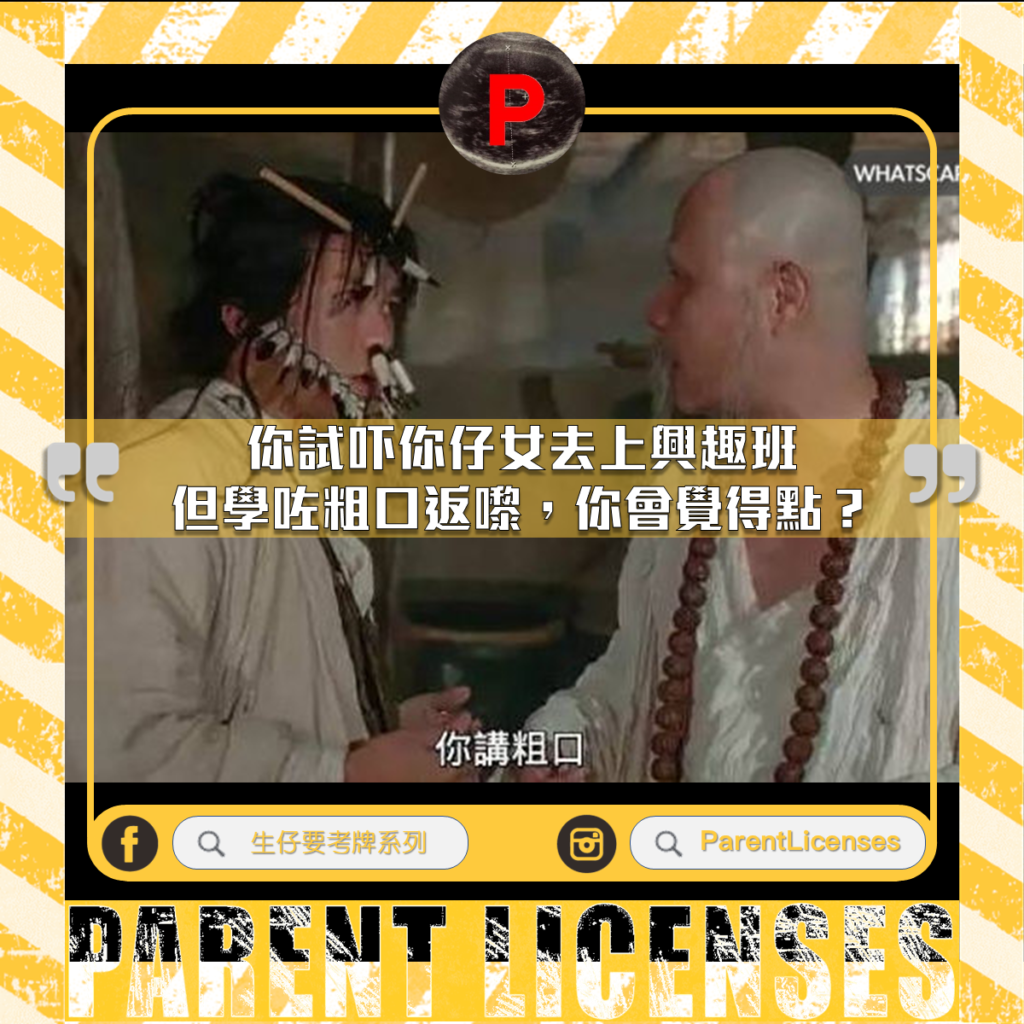 又假設,你試吓你仔女去上興趣班,但學咗粗口返嚟,你會覺得點?