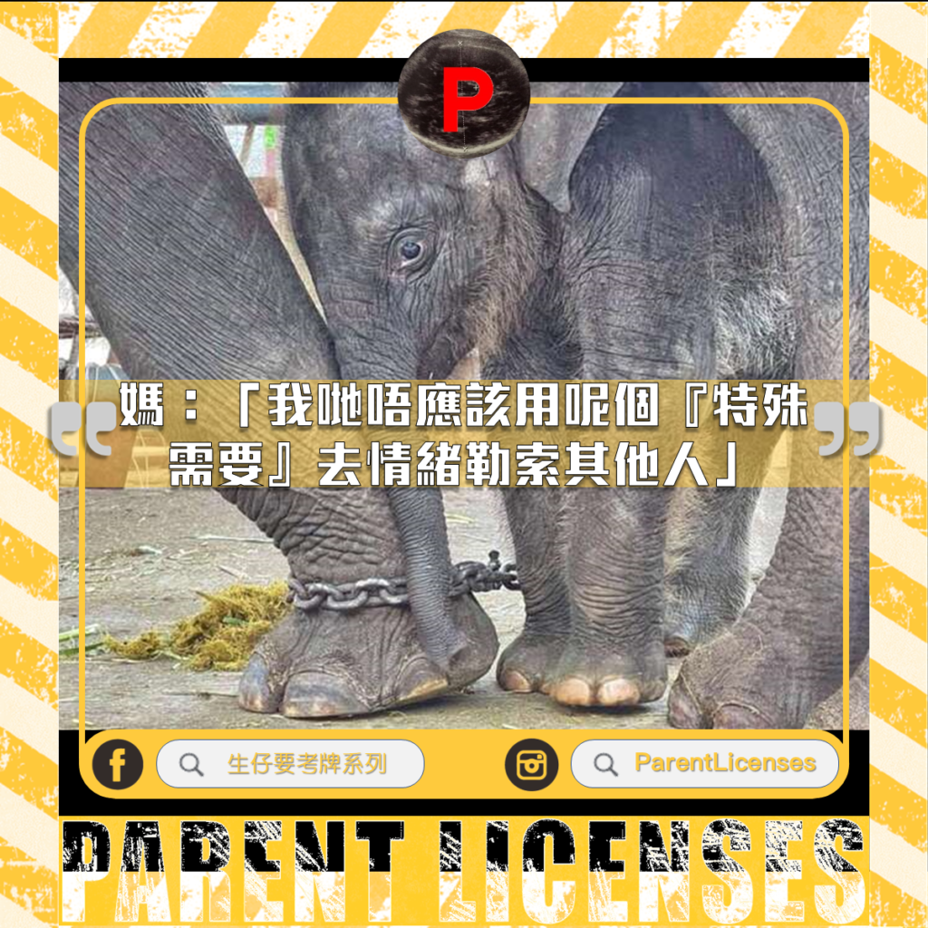 我媽就係講咗呢句嘢:「我哋唔應該用呢個『特殊需要』去情緒勒索其他人,老師花多啲時間俾你,係上堂時間定放學後?上堂時間你就會佔咗其他同學嘅學習時間,放學後你就會佔咗老師嘅私人時間,佢哋全部都冇義務要花多啲心機、時間俾你」