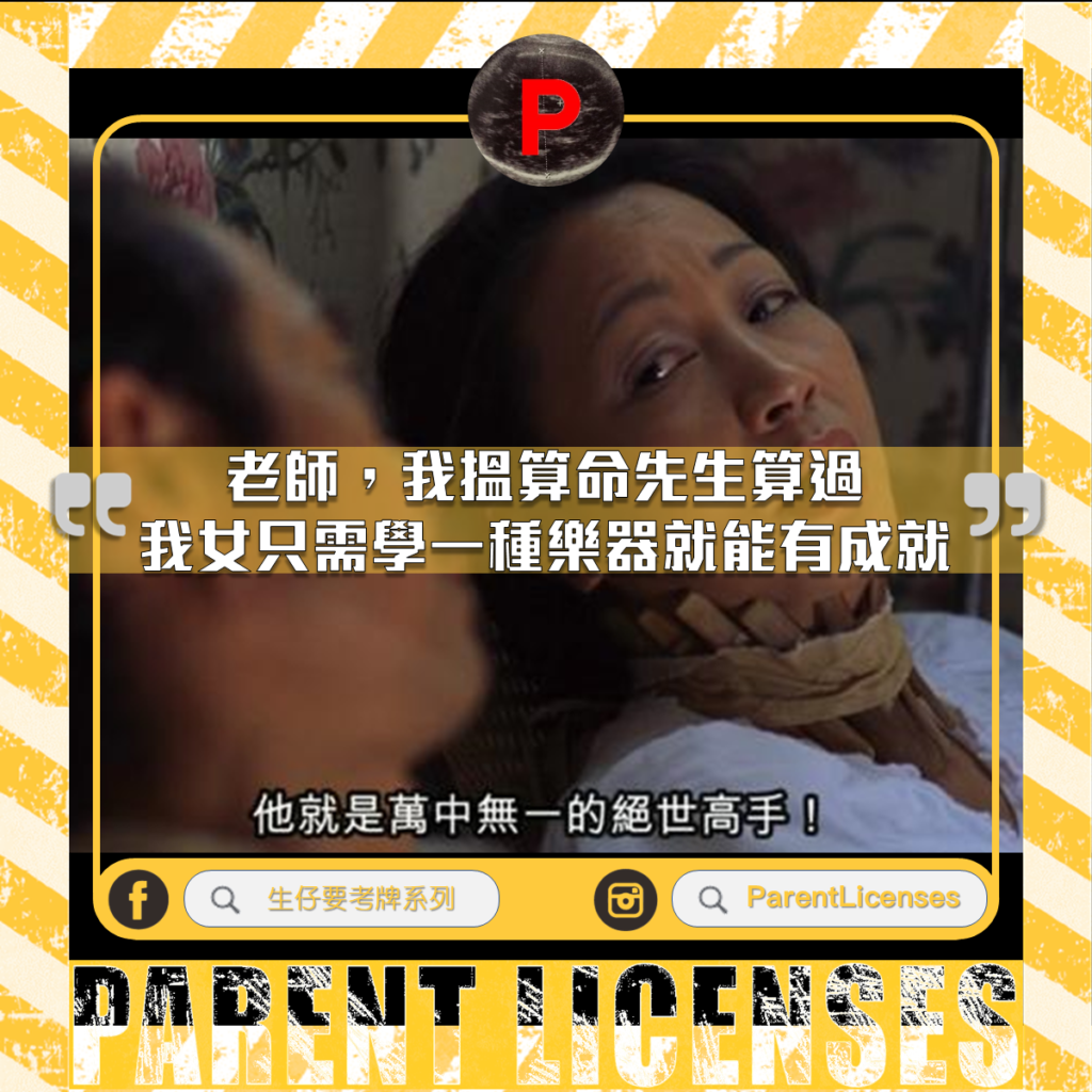 家長表示:「老師,我搵算命先生算過,我個女只需學一種樂器就能有成就」