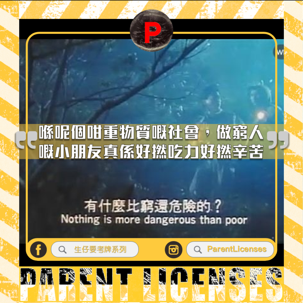 藉此向各位提倡天生天養嘅窮人,希望你哋唔好再咁天真,唔好不自量力地害咗下一代,因為我可以話俾你聽,喺呢個咁重物質嘅社會,做窮人嘅小朋友真係好撚吃力、好撚辛苦,而心中嗰一種自卑,更加係根深蒂固,跟足你一世!唔該你哋唔好再自欺欺人啦,醒下啦左膠們!