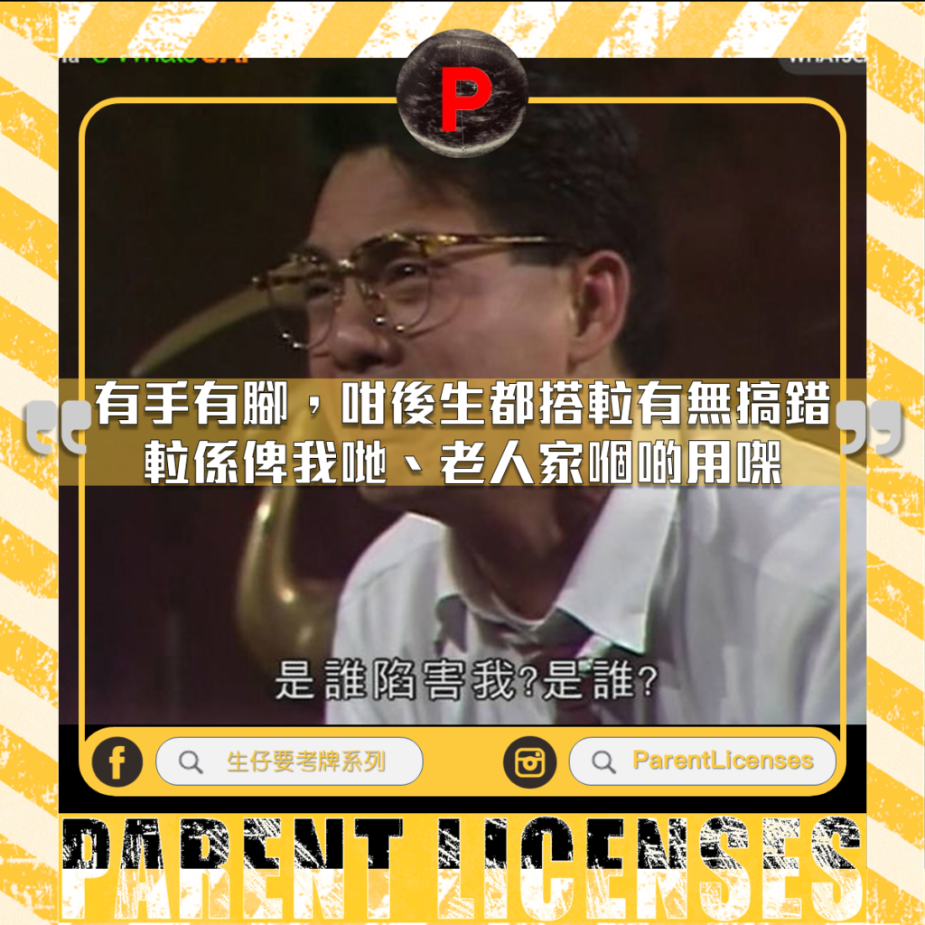 正當整條隊嘅人都入得晒部𨋢,佢就開始訓示佢個仔:「啲人有手有腳,咁後生都搭𨋢有無搞錯。呀仔,𨋢係俾我哋、老人家嗰啲用㗎」