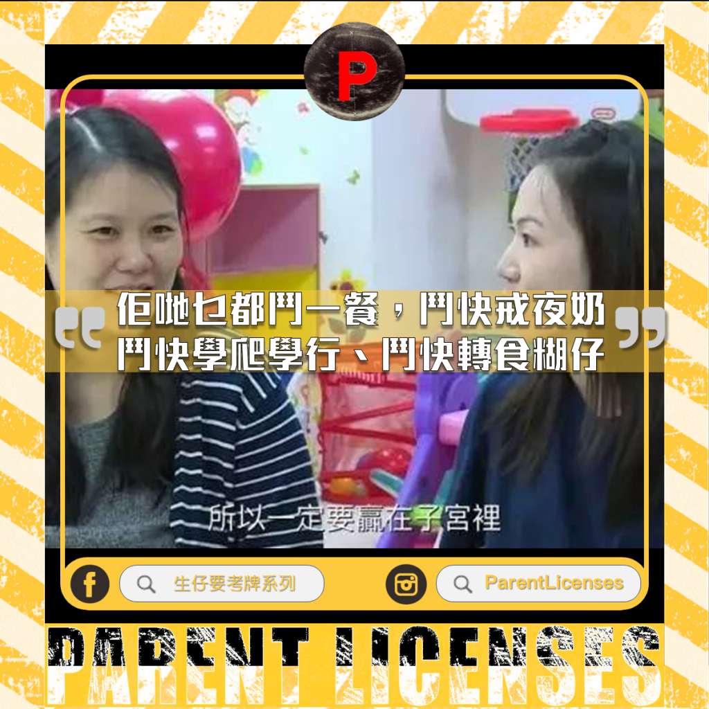 佢哋乜都鬥一餐,鬥快戒夜奶、鬥快學爬學行、鬥快轉食糊仔……最後我退咗谷,因為我都係選擇信醫生、姑娘同陪月