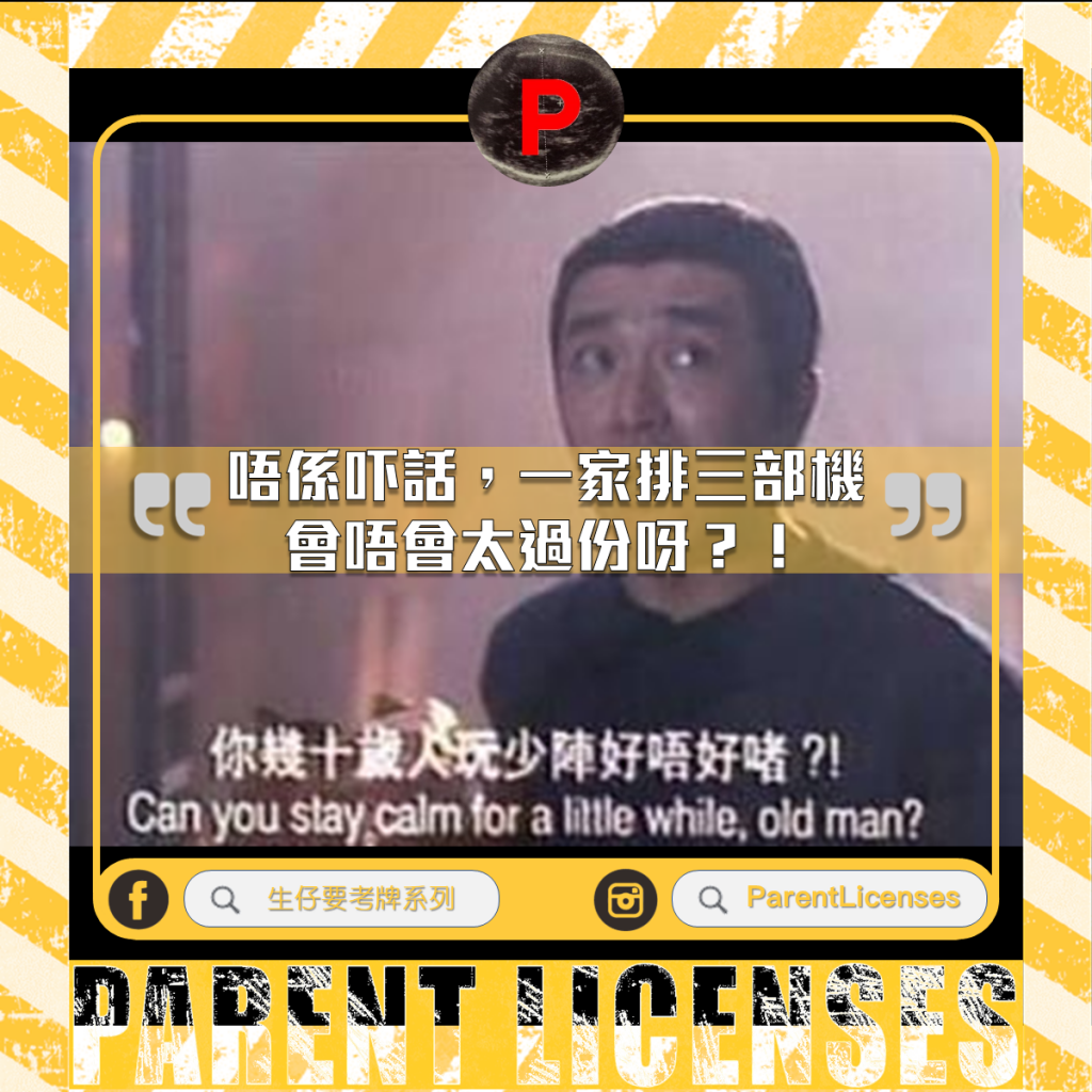 我即時大聲講:「唔係吓話,一家排三部機,會唔會太過份呀?!」