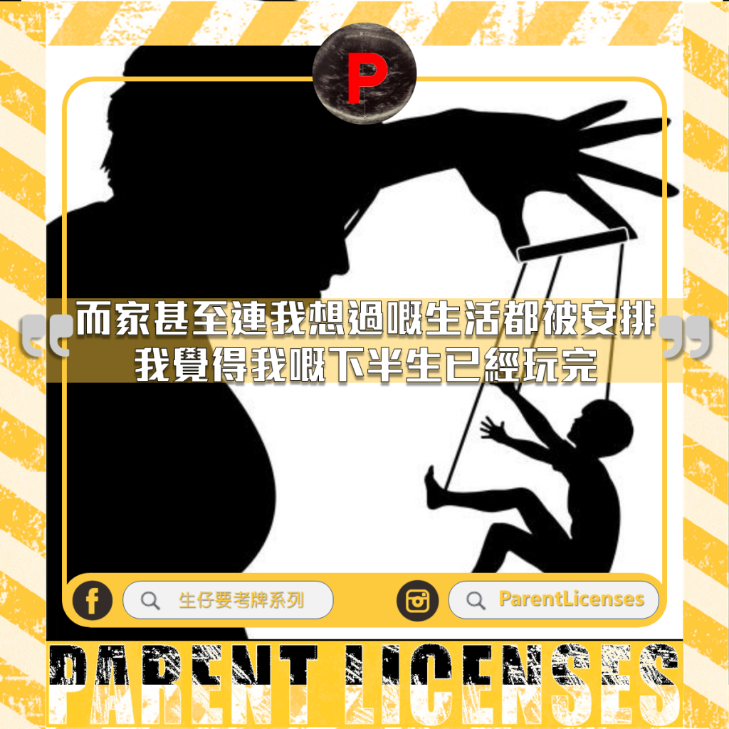 因為家庭嘅問題,我真心冇信心去結婚,為咗下一代我應該更加唔會生仔。而家甚至連我想過嘅生活都被安排,我覺得我嘅下半生已經玩完
