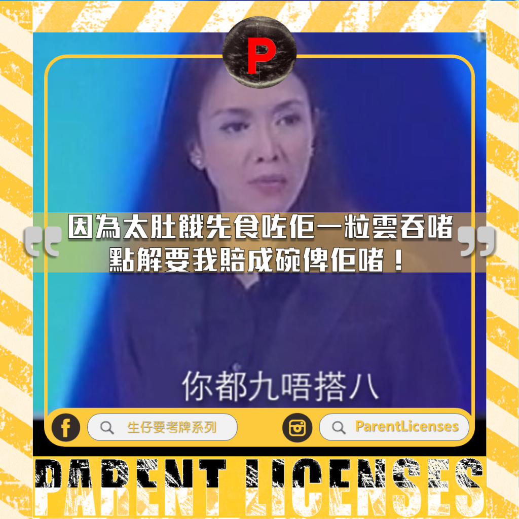 人哋老母:「其實baby都係因為太肚餓先食咗佢一粒雲吞啫!點解要我賠成碗俾佢啫!好蝕囉我覺得!」