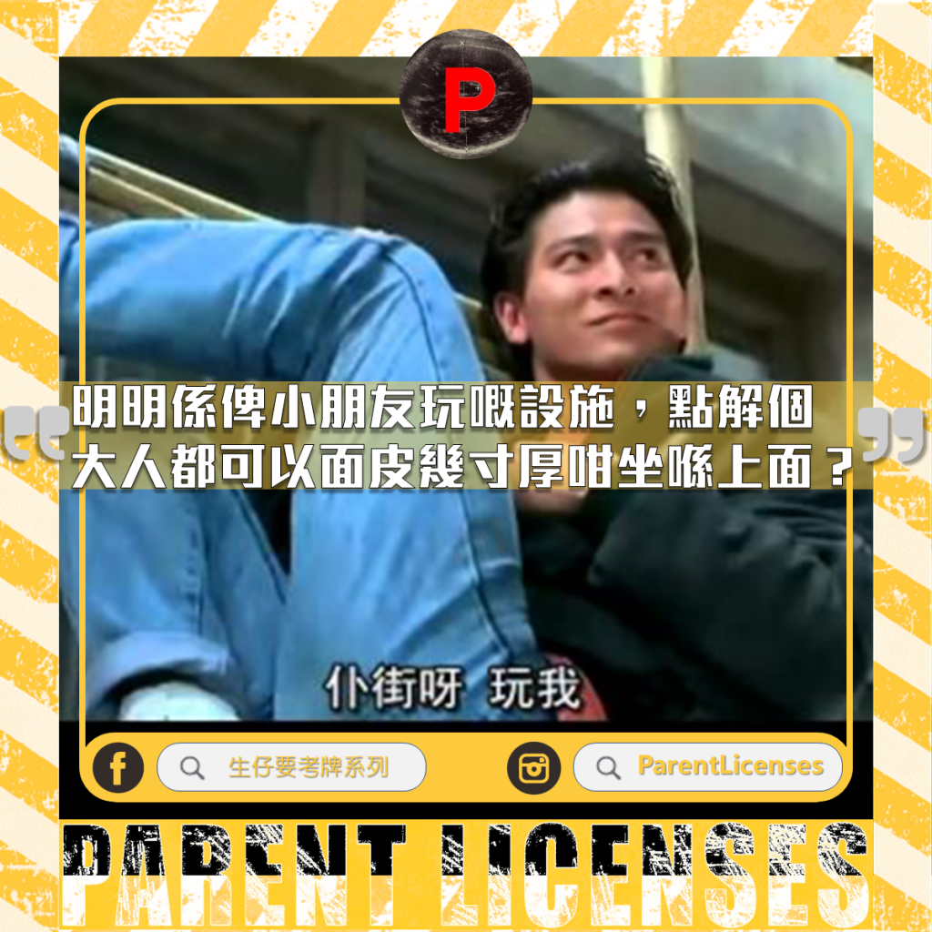 明明係俾小朋友玩嘅設施,點解個大人都可以面皮幾寸厚咁坐喺上面?明明附近好多冇人坐嘅櫈可以坐,點解個大人要阻礙其他小朋友玩?