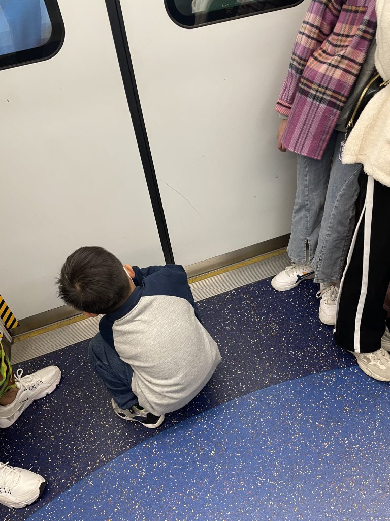 於2023年1月25日約09:50,我由朗屏站乘搭一架往烏溪沙方向的第五卡近第一門前,有一名男童坐於車廂地上,當時的他並沒有影響到他人,故大家都無出聲