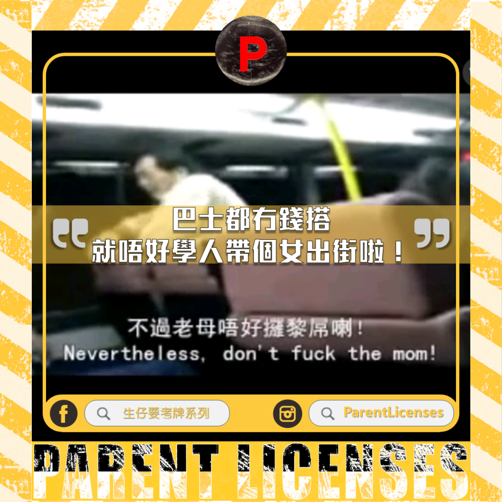 做人老豆做到咁樣,將啲嘢打橫嚟講,喺巴士講粗口犯法㗎,教壞晒個女。做老豆做到你咁都真係幾好意思喎,自己身教做唔好,居然重要鬧翻人又要屈我!養不教就父之過,唔識教就唔好生!