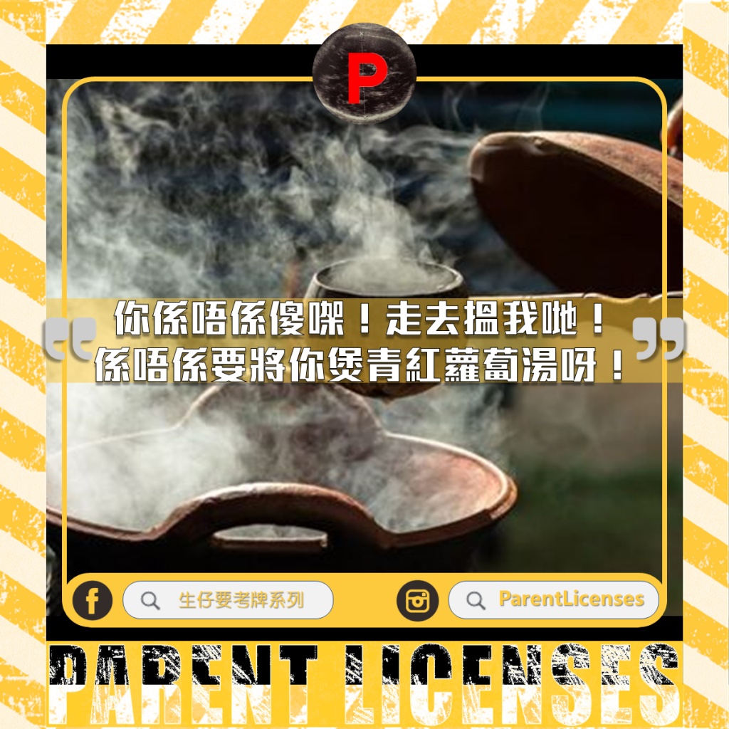 阿媽續道:「係唔係要將你煲青紅蘿蔔湯呀!」