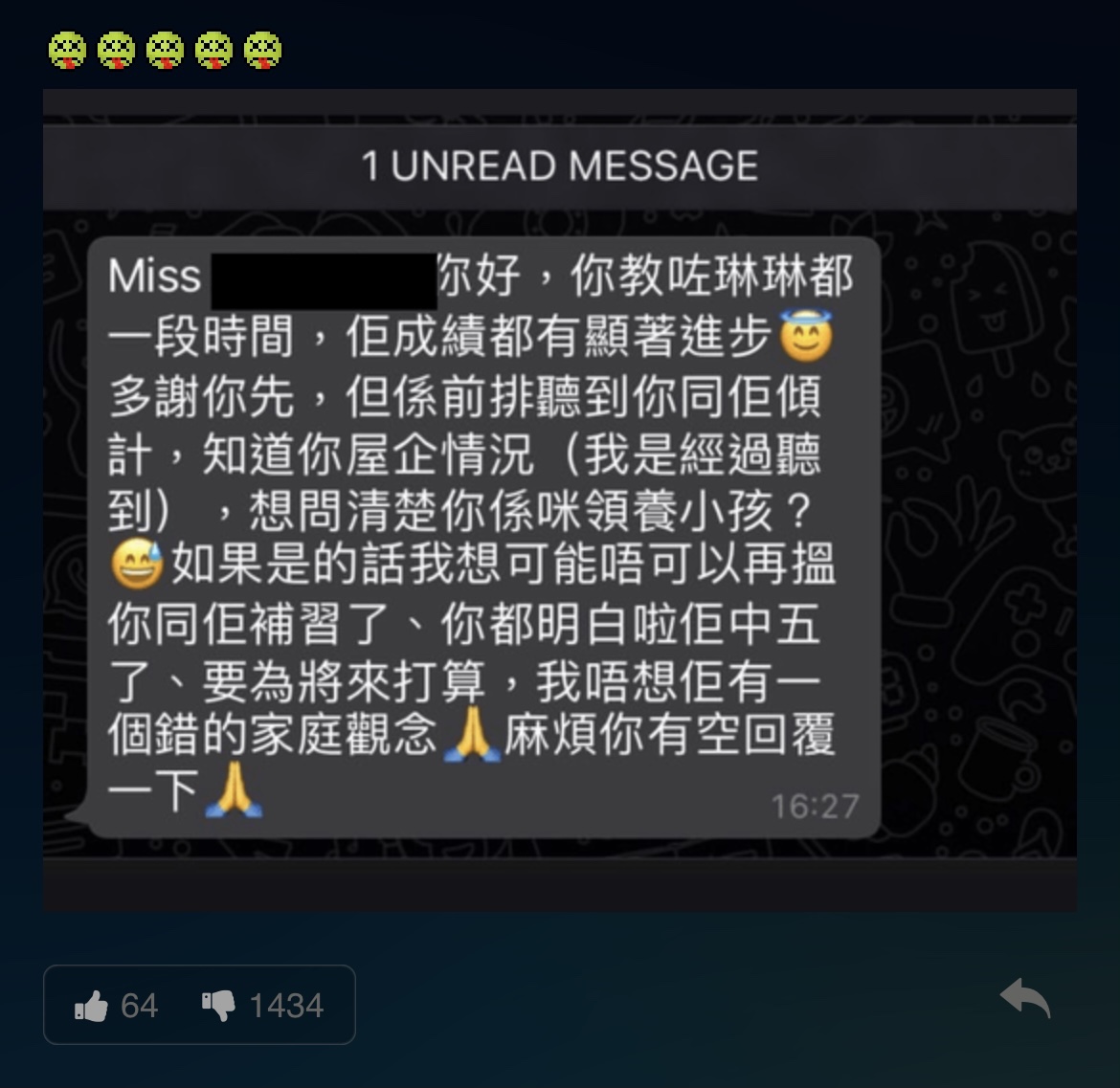 補習老師係唔係有領養小朋友關個老母乜事?老師係唔係有領養小朋友同佢教學質素毫冇關係㗎喎