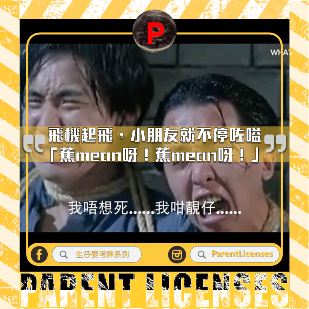 當架飛機起飛離地嗰刻,小朋友就不停咗嗌:「蕉mean呀!蕉mean呀!」(普通話即「救命呀」嘅意思)