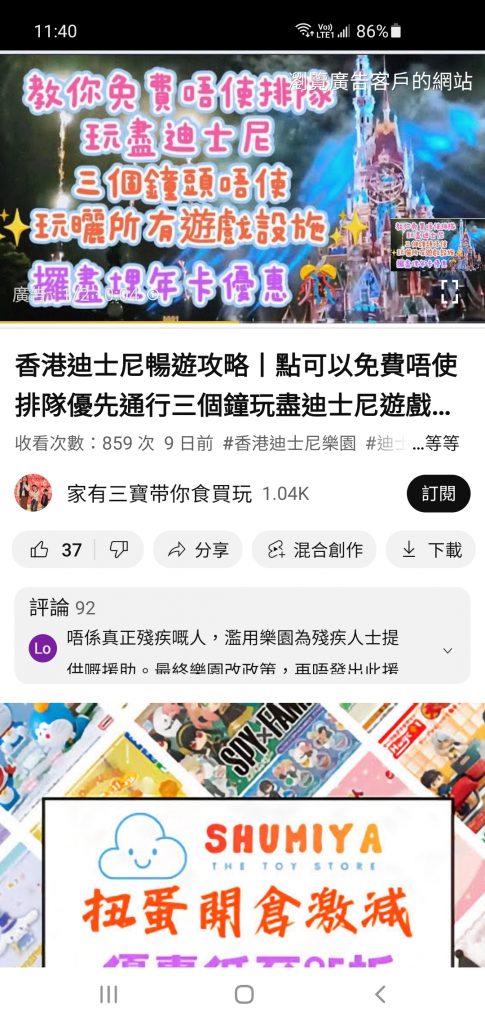 濫用傷殘証 玩樂篇 2023 年 4 月 3 日 ParentLicenses 瀏覽次數: 4,332 圖片來源@K媽 #ParentLicenses2118 此影片亂教人濫用迪士尼賓客援助卡,並不是真正有傷殘証的。而迪士尼因為濫用情況,4月開始已經改了制度,令真正的傷殘人士十分不便讀者投稿@K媽
