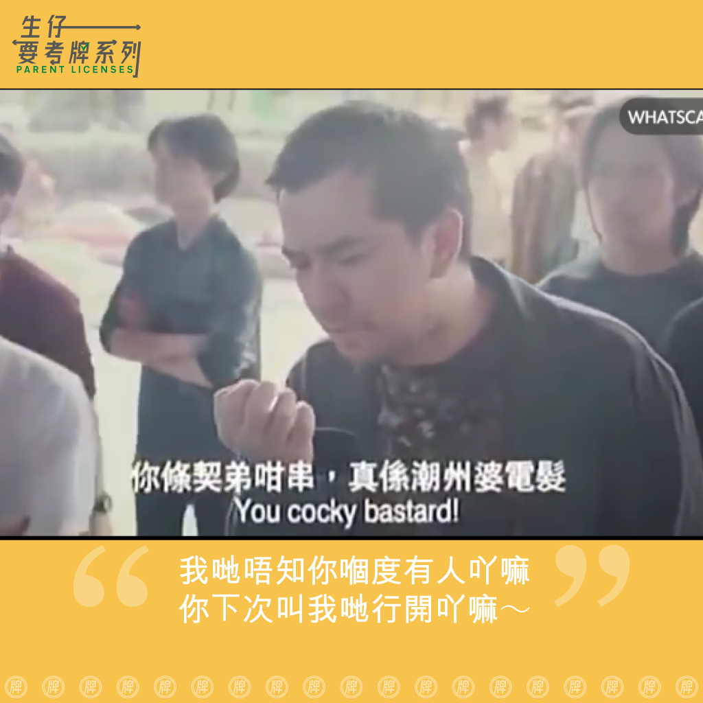 最後要扮有人打嚟搵經理,經理要扮入房,咁我先出到去。個老豆就仍然繼續睥住我,而老母就用個好似佢哋應分嘅語氣講:「我哋唔知你嗰度有人吖嘛,咁就梗係放喺度啦,你下次叫我哋行開吖嘛~」