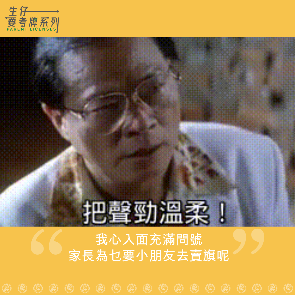我心入面充滿問號,為乜而家啲細路賣旗唔出聲,反而要他人做主動?為乜要七個人阻住個地鐵出口?為乜條街咁多人,但呢三個女孩都要只問同一位男士?為乜三位母親想閒聊,喺街傾都唔搵個地方坐低慢慢傾?為乜要賣旗呢?