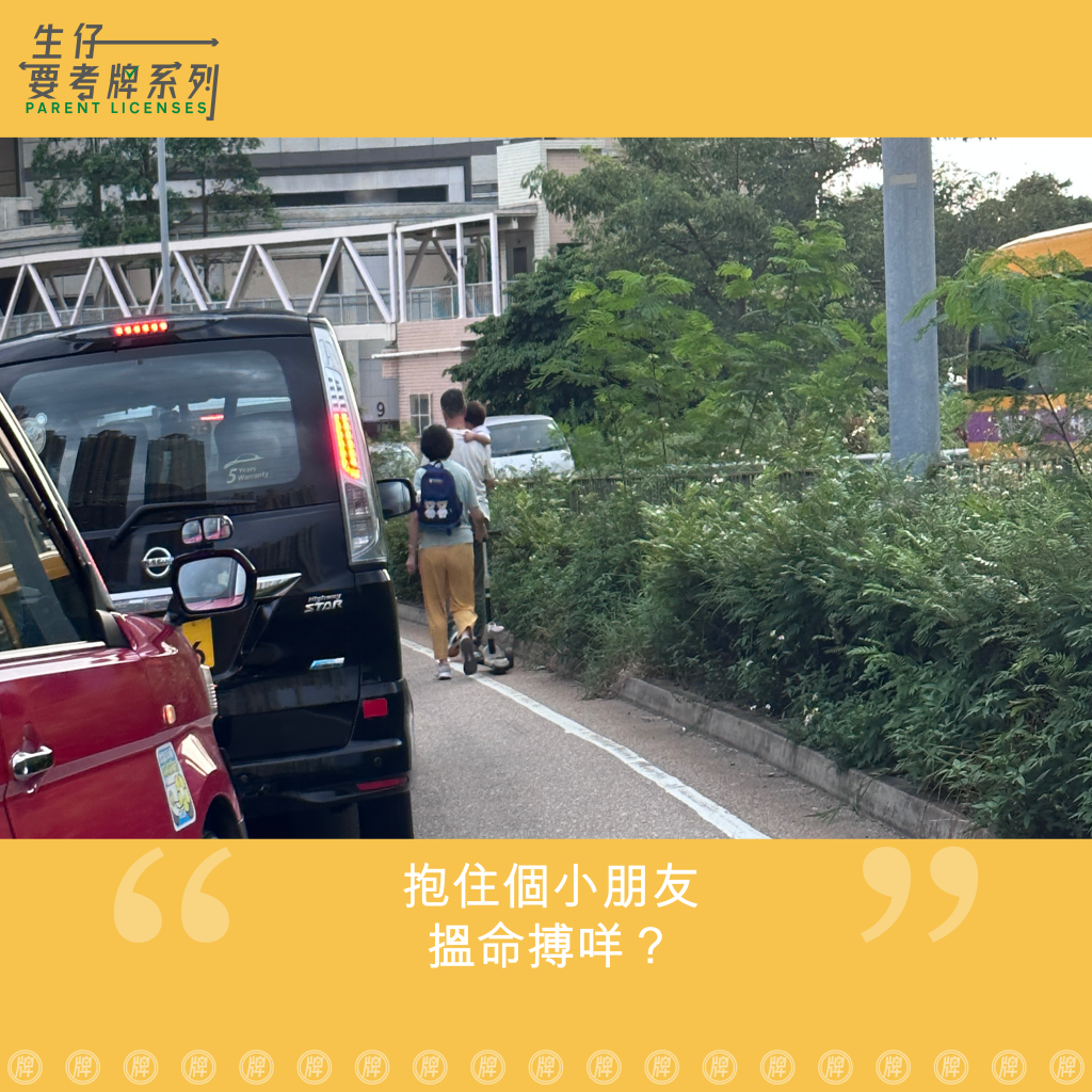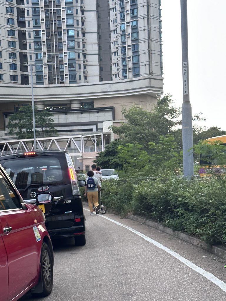 佢企喺路邊(迴旋處出口路邊)等咗陣,原來係重有個婆婆拎住滑板車有啲遴迍咁跟住落車,然後佢哋行迴旋處出返去