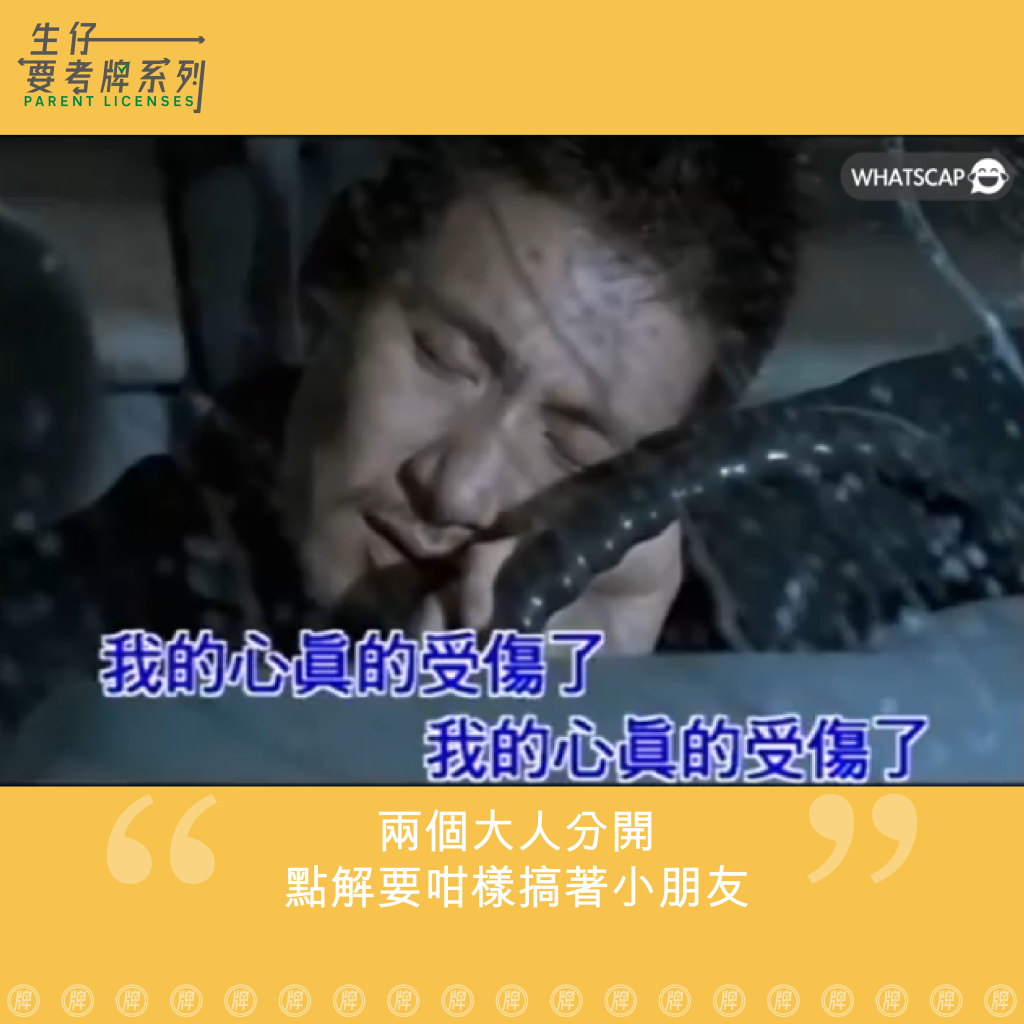 我好傷心,又唔明白,唔鐘意爸爸還唔鐘意爸爸,即使兩個大人分開,點解要咁樣搞著小朋友,點解要咁樣破壞人家嘅心機?