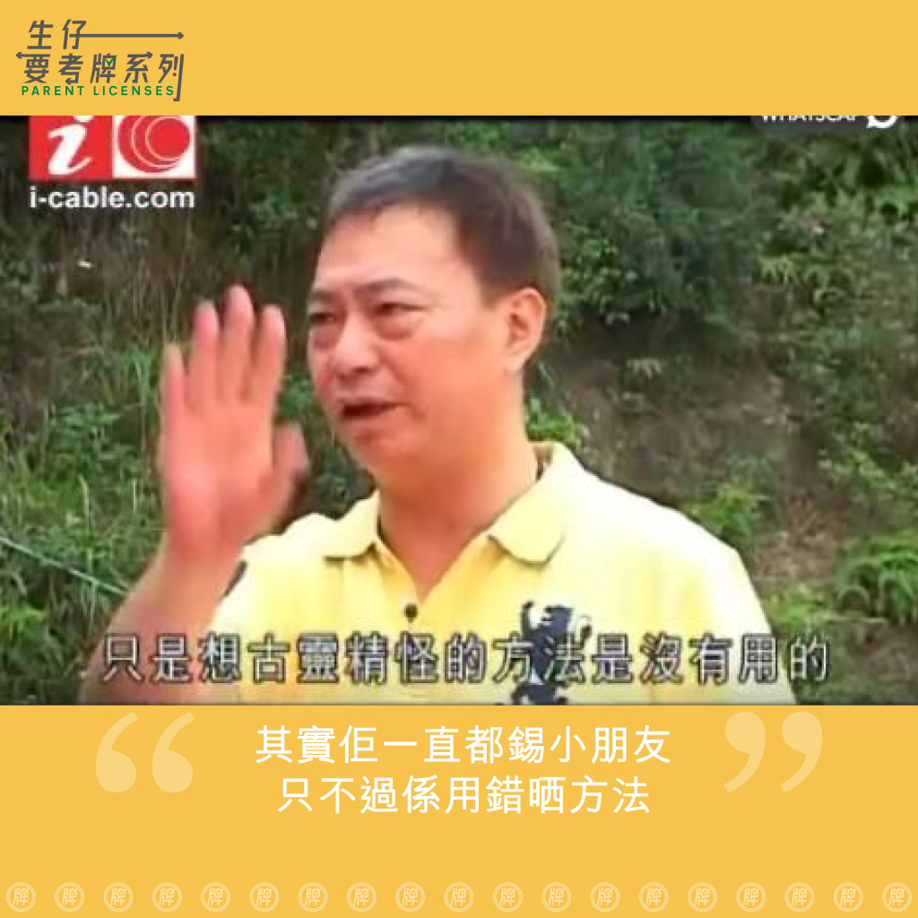 佢的確係「唔識」以及「唔適」做人爸爸,因為我喺後來親眼見到佢同A君或者仔仔相處(兩個小朋友相差十幾年)時,我先發現佢真係唔識。佢係會因為怕同A君起衝突,所以選擇緃容。當然佢一直唔覺得係縱容,反而覺得係我對小朋友(我個仔)嘅管敎「太嚴苛」