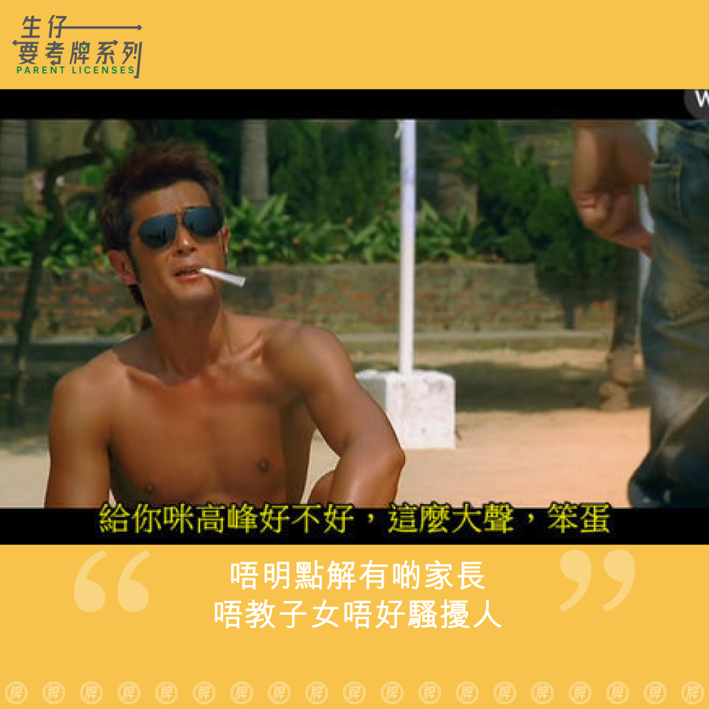 雖然我好年輕生仔,但我會教導小朋友出街睇片唔好播聲,唔好大聲喧嘩騷擾人,做人要有公德心,出街食飯唔好食到污糟邋遢,要人執咁衰等等