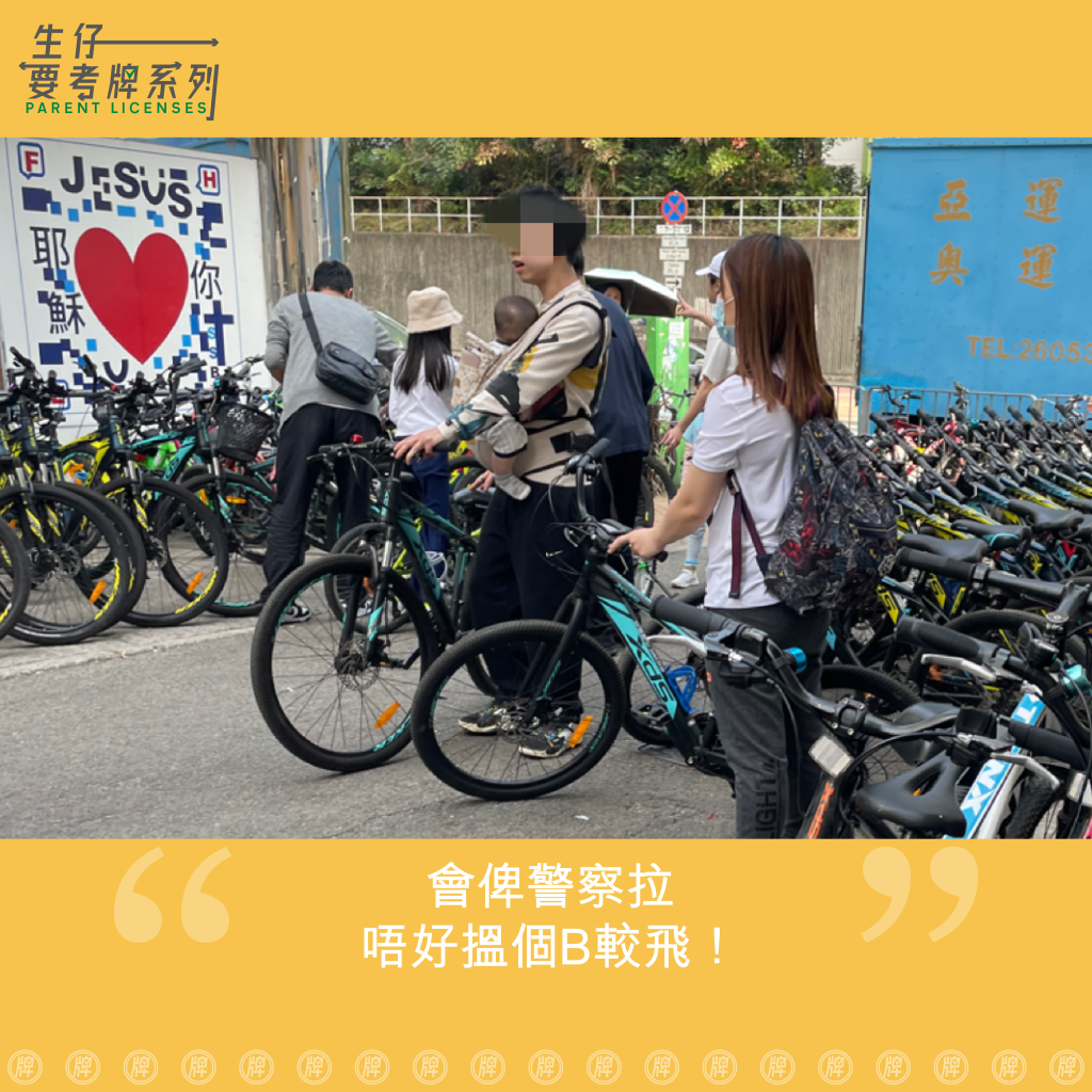 租單車 玩樂篇 2024 年 2 月 17 日 ParentLicenses 瀏覽次數: 4,396 #ParentLicenses2472 年輕夫婦帶埋小朋友踩單車係好溫馨嘅,但唔係咁踩法囉今日喺單車舖外見到圖中呢對父母租單車,喺錢俾咗又揀緊車之際,坐喺附近餐廳門口嘅一個阿婆隨即破口大罵阿婆:「會俾警察拉,唔好搵個B較飛!」 阿爸試咗上車踩幾腳,然後就問職員有冇三輪車。職員話冇,同時又話:「好多人都係咁踩,三輪車車身闊重危險」過程中阿婆繼續鬧,成條街都聽到,始令對父母終於放棄租單車,冇癮地離開,而單車舖幾個阿叔塊面就勁黑圖片來源@大圍街坊讀者投稿@大圍街坊