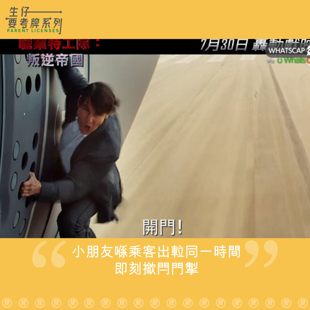 揸𨋢人 出門篇 2024 年 2 月 18 日 ParentLicenses 瀏覽次數: 2,618 #ParentLicenses2474 有一天搭𨋢,𨋢內勁多人於某數層,有企得比較入的乘客需要出𨋢,故此站在門口的乘客就行出去讓其他人出當中𨋢內原有一對父母加上大約五歲的兒子,兒子於乘客出𨋢的同一時間走上前即刻按關門掣,令到出咗𨋢打算入返來的乘客被撞到正了我好奇怪,為何細路的父母係完全無反應,既沒有叫個細路同人講對唔住,也沒有主動同人講對唔住。我心諗,你們真係好有家教!讀者投稿@多事的人