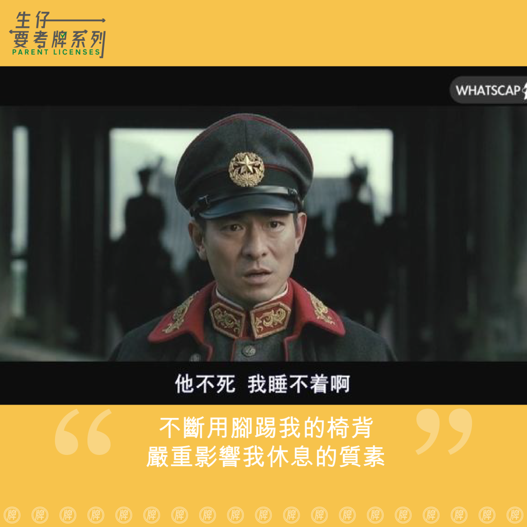 不久後,我發現後排坐下一家不知是三或四口,其中一位媽媽懷裡抱著大約一歲左右的妹妹。那位妹妹不斷用腳踢我的椅背,嚴重影響我休息的質素